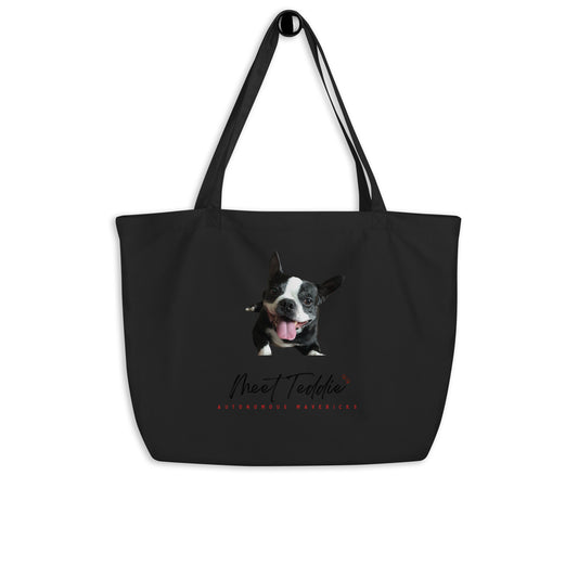 Organic Cotton Tote Bag Large (Meet Teddie / Boston Terrier)